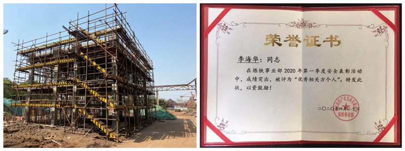 2020年4月19日,江蘇分院總承包的“南京金江冶金爐料有限公司原料廠一混勻增設(shè)布袋除塵器項(xiàng)目”土建主體工程順利封頂,項(xiàng)目經(jīng)理李海華榮獲南鋼集團(tuán)頒發(fā)的“優(yōu)秀相關(guān)方個(gè)人”稱(chēng)號(hào)。
