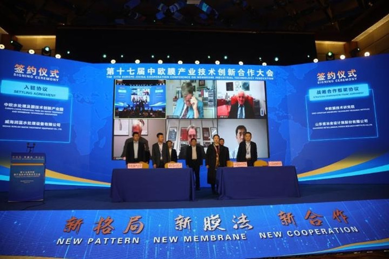 此次大會由山東省科技廳、威海市人民政府、中國膜工業(yè)協(xié)會、歐洲膜學(xué)會聯(lián)合主辦;由威海市科學(xué)技術(shù)局、環(huán)翠區(qū)人民政府、哈爾濱工業(yè)大學(xué)(威海)、青島農(nóng)業(yè)大學(xué)、中歐膜技術(shù)研究院承辦。本次大會邀請了歐洲膜學(xué)會名譽(yù)主席恩瑞克·德里奧利,中國工程院院士、哈爾濱工業(yè)大學(xué)教授、中歐膜技術(shù)研究院院長馬軍等多位國內(nèi)外膜科技領(lǐng)域?qū)<覍W(xué)者線上、線下同步參會。參會各方圍繞膜產(chǎn)業(yè)發(fā)展作主旨演講、專題報(bào)告,促進(jìn)威海膜產(chǎn)業(yè)升級發(fā)展。