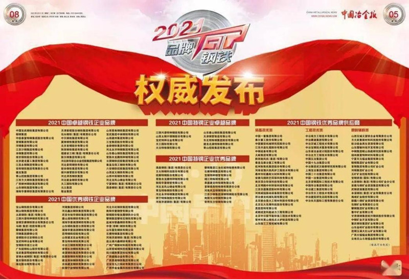 近期中國冶金報公布了2021年度中國鋼鐵品牌企業(yè)和2021年度鋼鐵及產業(yè)鏈“綠色”標桿企業(yè),我公司雙雙上榜。5月10日,第5個中國品牌日,公布了2021中國鋼鐵品牌榜單,公司再次榮獲中國鋼鐵工程技術類“優(yōu)秀品牌供應商”榮譽稱號,我公司已經(jīng)連續(xù)兩年獲得中國鋼鐵工程技術類優(yōu)秀品牌企業(yè)。6月5日,世界環(huán)境日,公布了2021鋼鐵及產業(yè)鏈“綠色”榜單,公司榮獲中國“鋼鐵產業(yè)鏈綠色標桿企業(yè)”稱號。