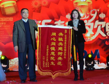 2019年1月25日,山東省冶金設(shè)計院股份有限公司迎新春聯(lián)歡會上,濟南高新區(qū)社區(qū)黨支部書記王彧向山冶設(shè)計黨委書記谷卓奇獻上了錦旗,錦旗上寫著:“共駐共建樹典范,同心同德惠民生”。隨后社區(qū)代表表演了葫蘆絲--《春滿傣鄉(xiāng)》,贏得了觀眾的一致好評。這是該社區(qū)第二次受邀參加山冶設(shè)計的新春聯(lián)歡會。