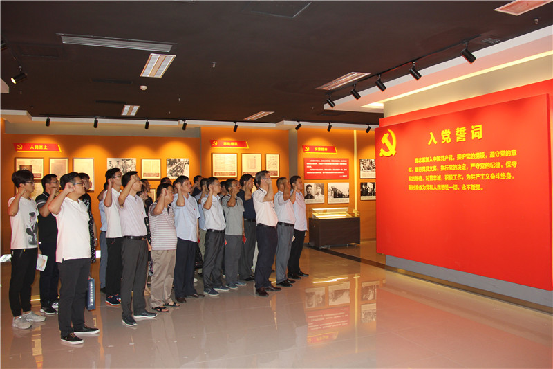 在鮮紅的黨旗前,黨委書記谷卓奇、黨委副書記劉洪亮、副總經(jīng)理李銳帶領(lǐng)大家重溫了入黨誓詞。