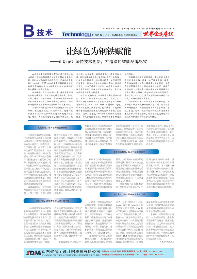 讓綠色為鋼鐵賦能——山冶設(shè)計堅持技術(shù)創(chuàng)新,打造綠色智能品牌紀實